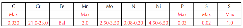 UNS S31803的化學成分是平衡的,以得到含有大致等量鐵素體和奧氏體的微觀結構。